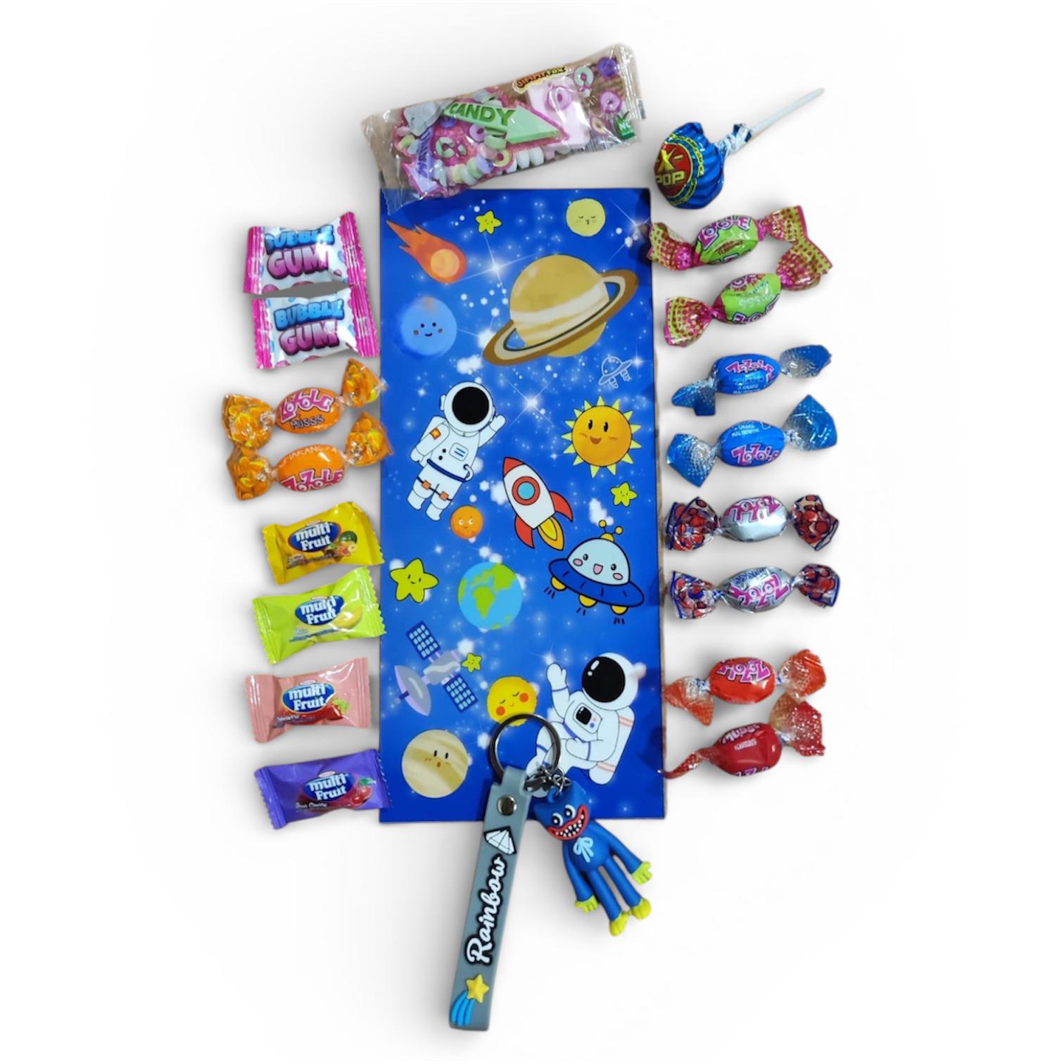 Vesmírný bonus: Na začátek každého balíčku přidáváme stylový sáček s vesmírným motivem, který obsahuje klíčenku, lízátko a další drobné sladkosti.