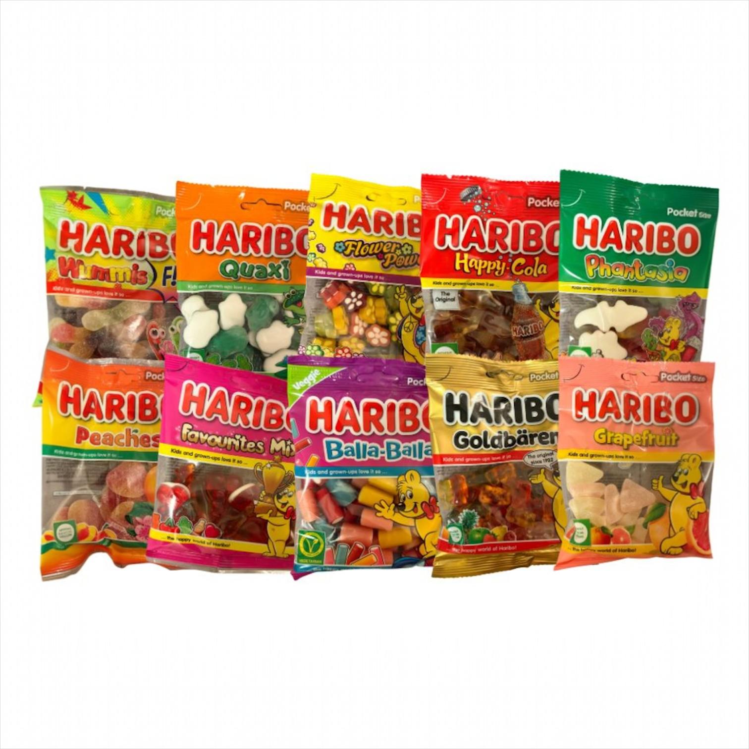 Haribo sekce: Wummis Fizzy, Quaxi (žabičky), Flower Power, Happy Cola, Phantasia, Peaches (broskve), Favourites Mix, Balla-Balla, Goldbären (zlatí medvídci) a Grapefruit.